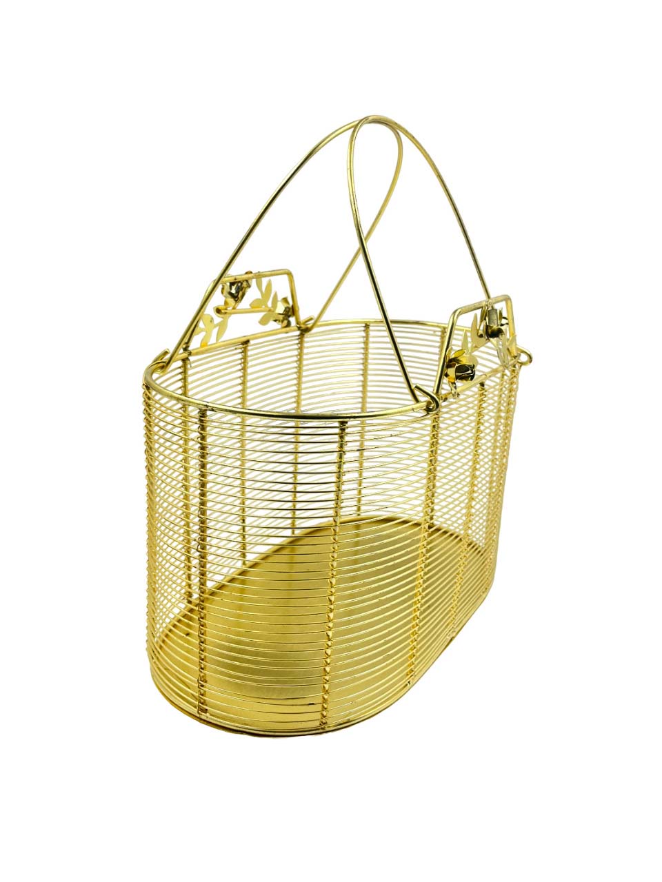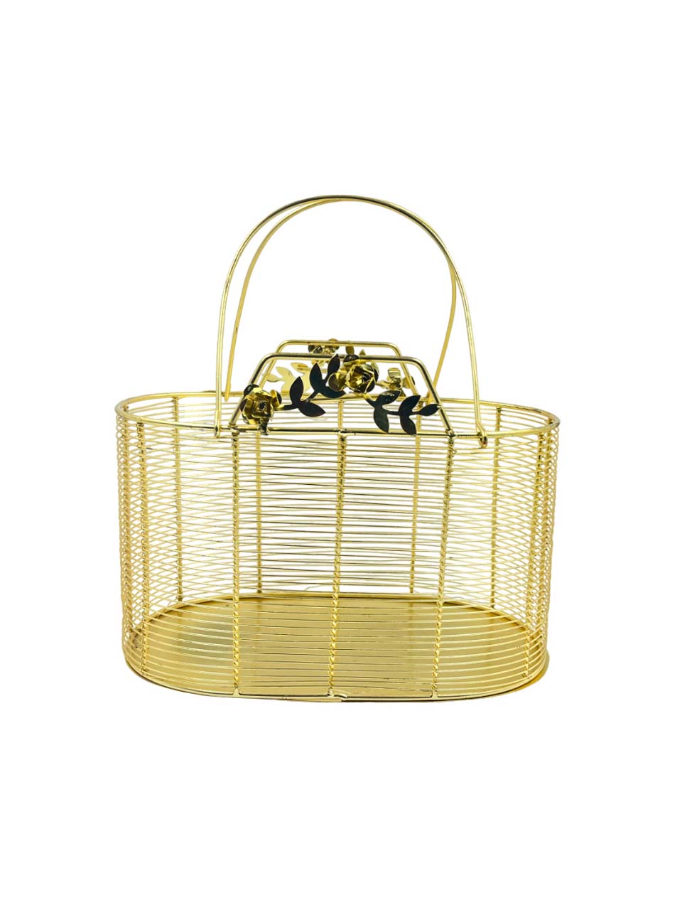 Elegant Gold-Finished Metal Wire Basket with Decorative Bow Handle – Multipurpose Storage Accessory|COLOUR-GOLD| Brand Name : SUGARCRAFT BOX CO