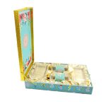 Indulge in the art of tea with our Floral Elegance Tea Box Set, a harmonious blend of form and function. Adorned with a captivating floral motif on a serene aqua background, this box adds a touch of spring to any room. Inside, the lustrous satin lining cradles two glass containers, perfect for storing your favorite tea blends. The intricately designed gold metalwork clasp ensures the treasures inside are well-secured. This box set isn’t just for tea connoisseurs; it’s a statement piece that will charm any who appreciate the beauty in details.