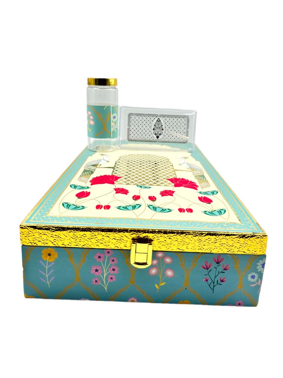 Home Products Dry fruit Boxes Floral Elegance Tea Box Set with Satin Lined Interior and Glass Containers