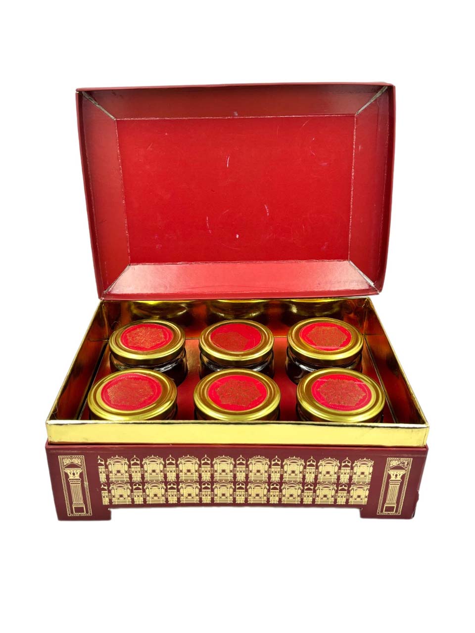 - Elegant Design: The box and containers feature a regal red color complemented by golden accents, ideal for adding a luxurious touch to your home decor.