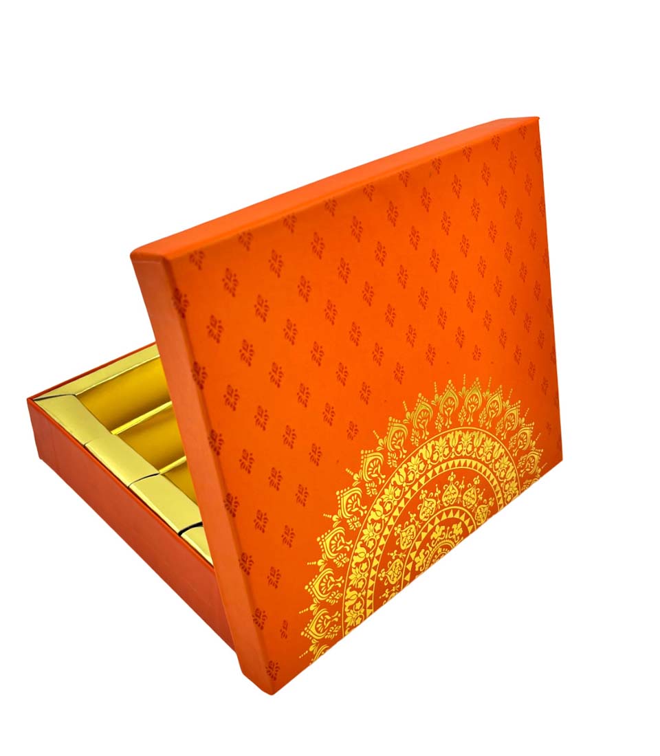 Sweet Box with Magnetic Flap | Handmade Cardboard Paper Gift Box for Gifting Sweets Chocolate Dry Fruits Cavity/Compartments (MB 07 A Mirage 1/2Kg Orange) PACK OF 5