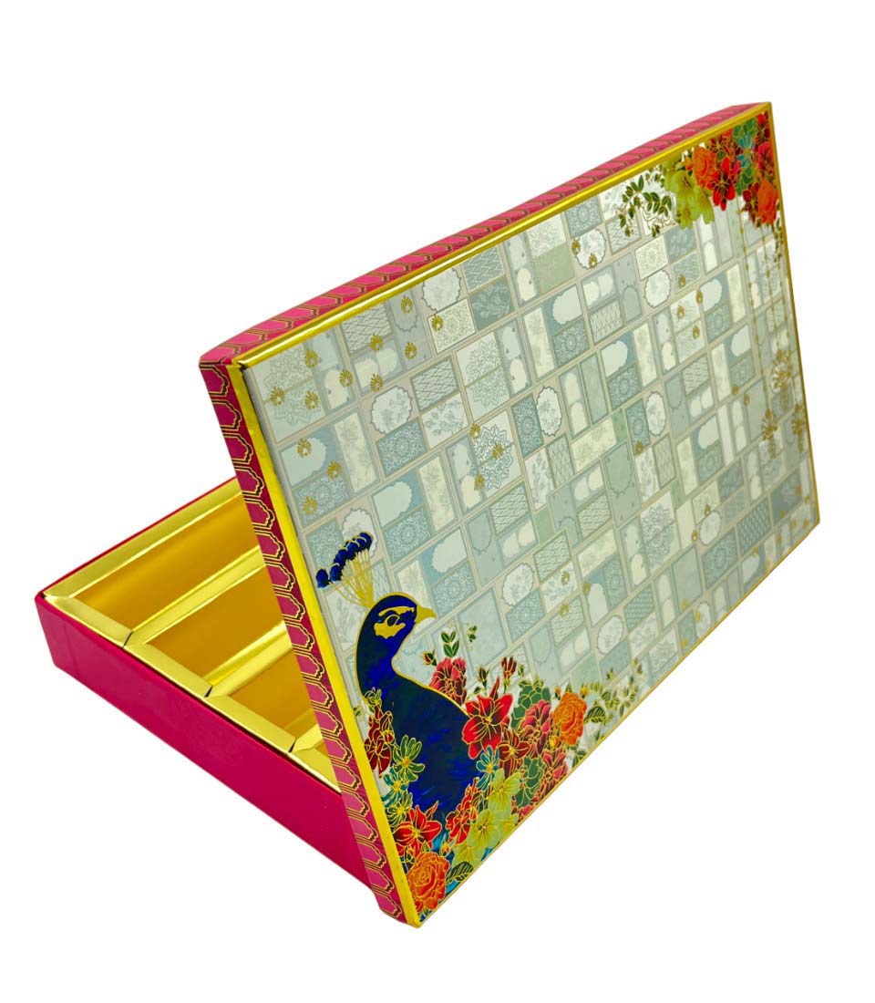 Home Products Sweet Boxes Sweet Box with Magnetic Flap | Handmade Cardboard Paper Gift Box for Gifting Sweets Chocolate Dry Fruits Cavity/Compartments (MB 100 Mayura C 1 kg box)PACK OF 5