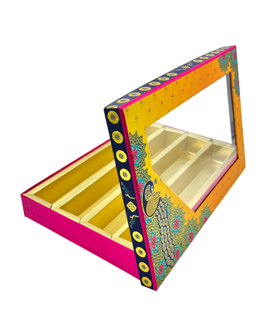 Be the first to review “Sweet Box with Magnetic Flap | Handmade Cardboard Paper Gift Box for Gifting Sweets Chocolate Dry Fruits Cavity/Compartments (MB 11 Peacock W 1 Kg Box) PACK OF 5” Cancel reply