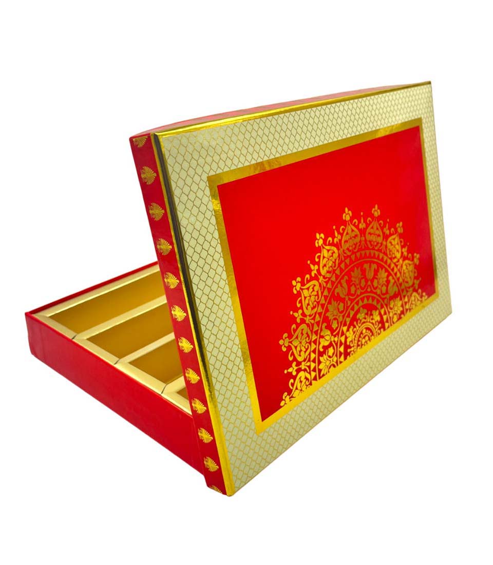 Sweet Box with Magnetic Flap | Handmade Cardboard Paper Gift Box for Gifting Sweets Chocolate Dry Fruits Cavity/Compartments (MB 79 Carnation C 1 Kg Box) PACK OF 5